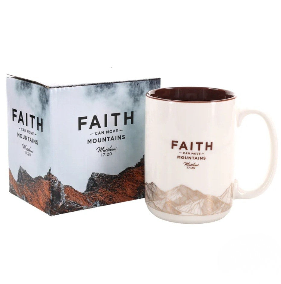 Faith Can Move Mountains White Ceramic Mug with Brown Interior