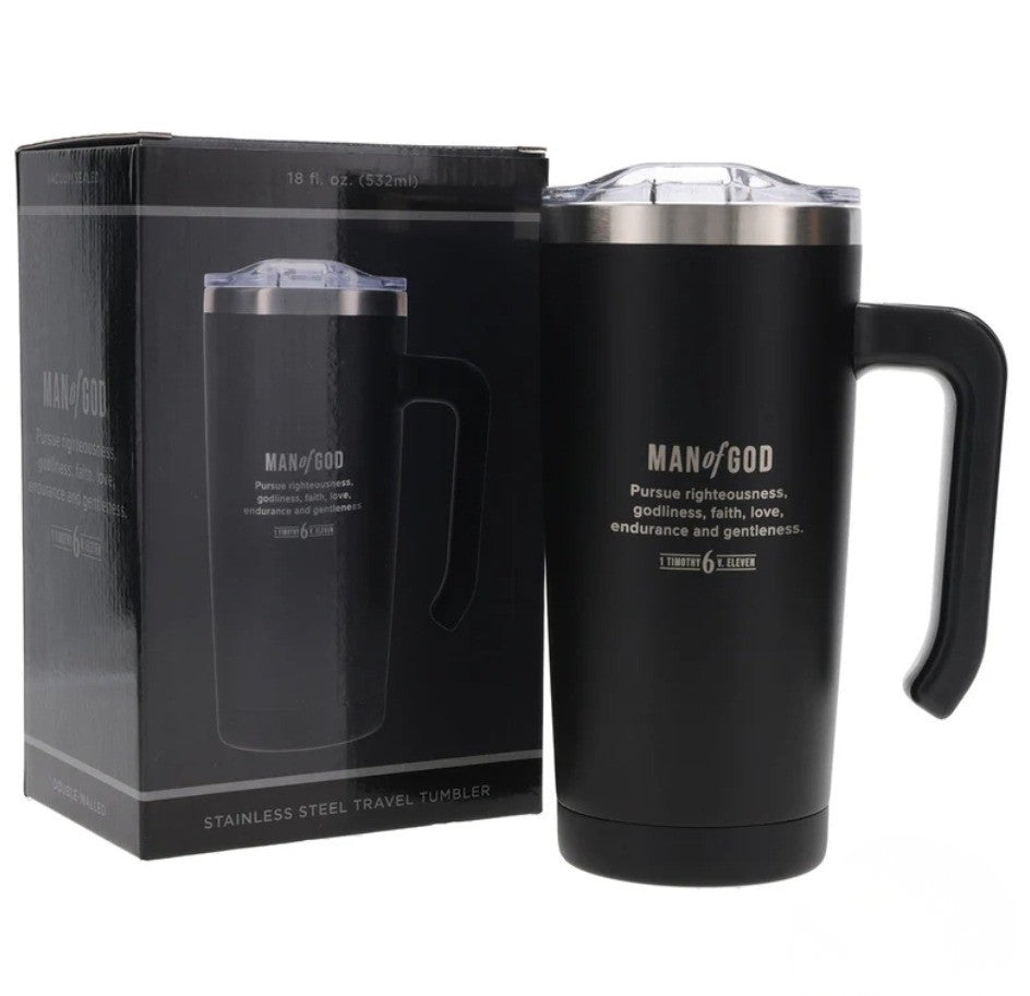 Man of God Black Stainless Steel Travel Mug with Handle